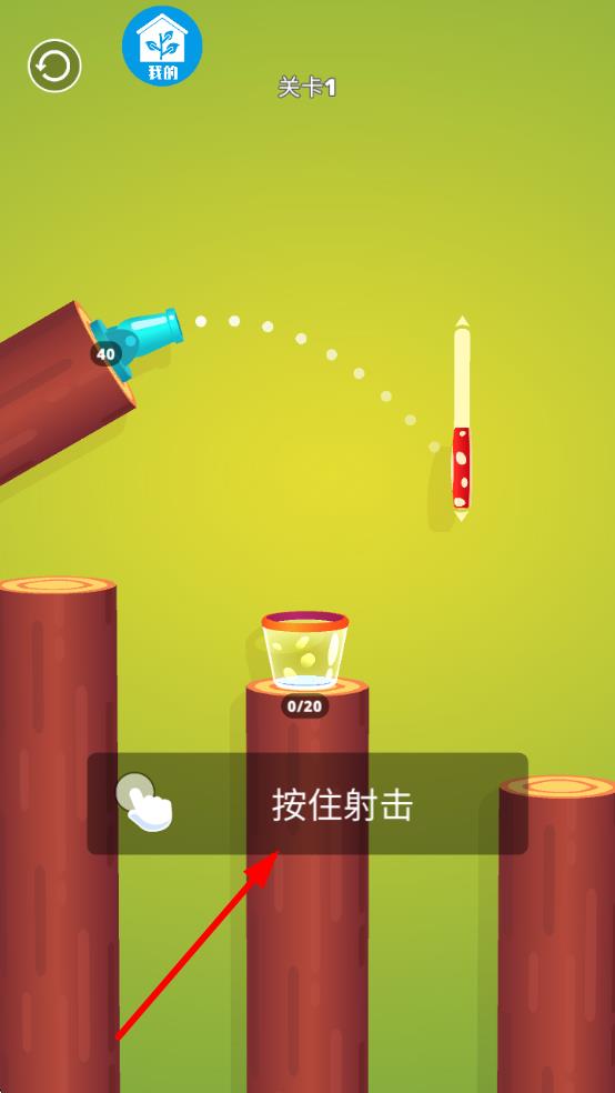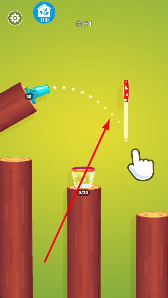 1、进入游戏选好关卡,瞄准目标容器,按住屏幕控制发射力度与方向,松手发射小球。