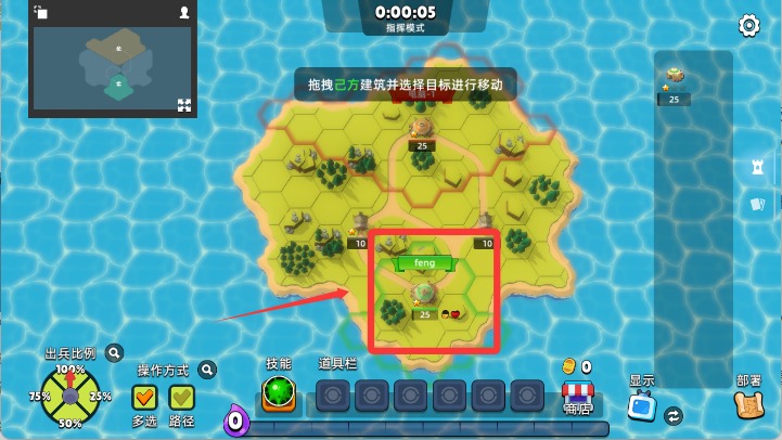 3、开始战斗后拖拽己方建筑并选择目标进行移动。