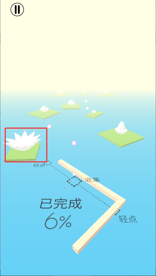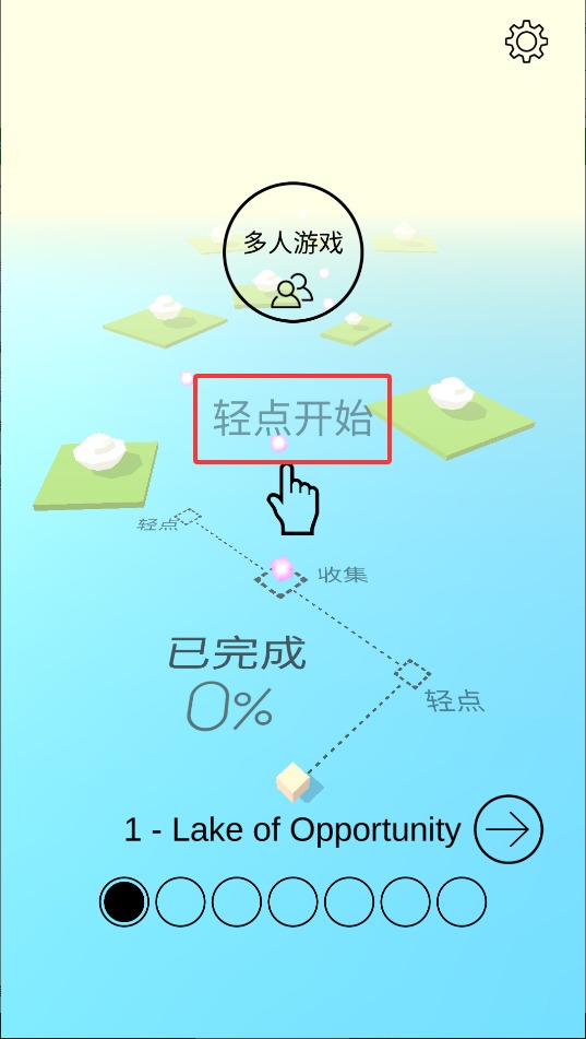 1、点击屏幕中央的启动按钮,小精灵将自动向前飞行,注意观察前方障碍物的分布规律,做好转向准备。