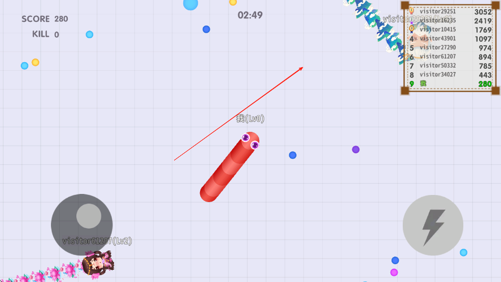 3、通过持续吞噬让自身变得足够强大,成为河道中体型最大的贪吃蛇,即可在多人竞技中获得胜利。