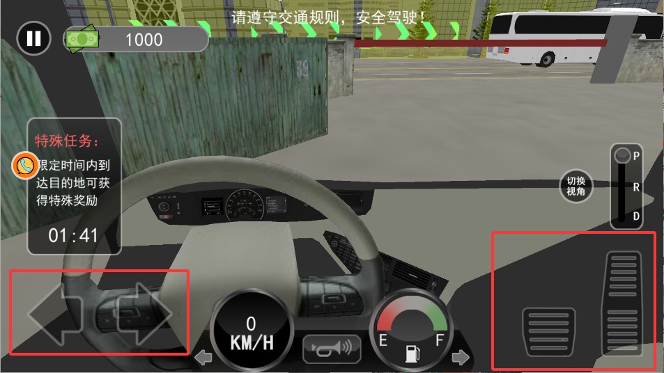 2、左手点击屏幕左侧控制卡车转向,右手按住右侧区域调节油门大小,灵活配合实现平稳过弯与加速超车。