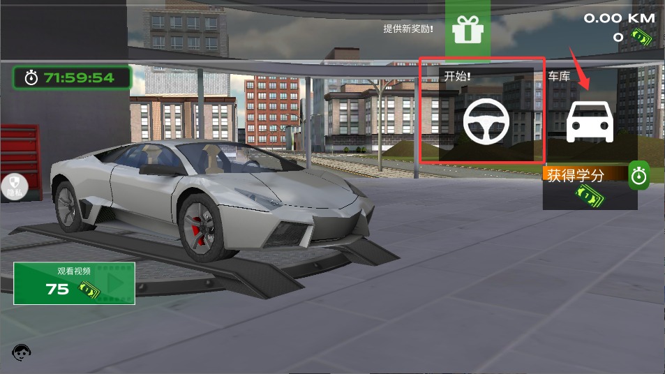 1、游戏启动后进入车库界面,点击心仪车辆开始驾驶,不同车型拥有独特性能,建议新手优先选择操控性较好的款式。
