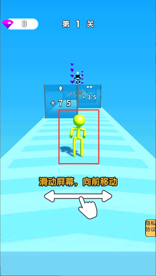 1、游戏启动后通过左右滑动屏幕控制橡皮人移动方向,注意避开途中的静态障碍物,保持平稳前进节奏。