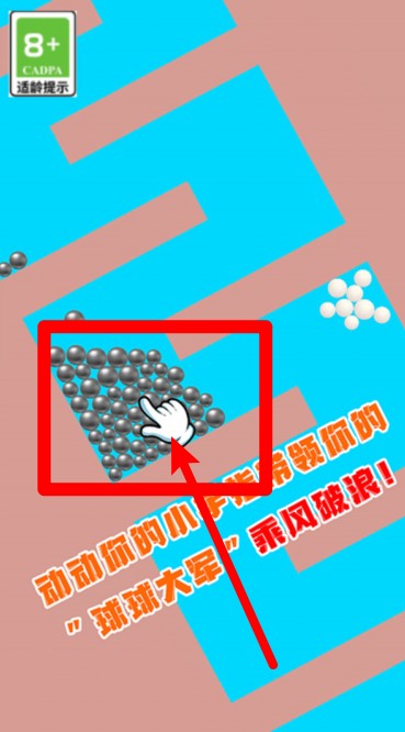2.队伍壮大:每吸附一个小球都会让队伍变得更庞大华丽,给宝宝视觉上的成长回馈,培养目标感与持续操作的专注力。