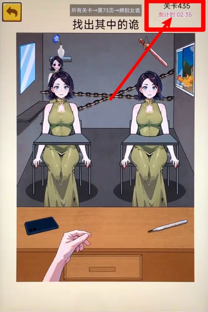 3.每关右上角会显示当前关卡编号与倒计时,需在规定时间内完成找茬操作,否则将自动失败重来。