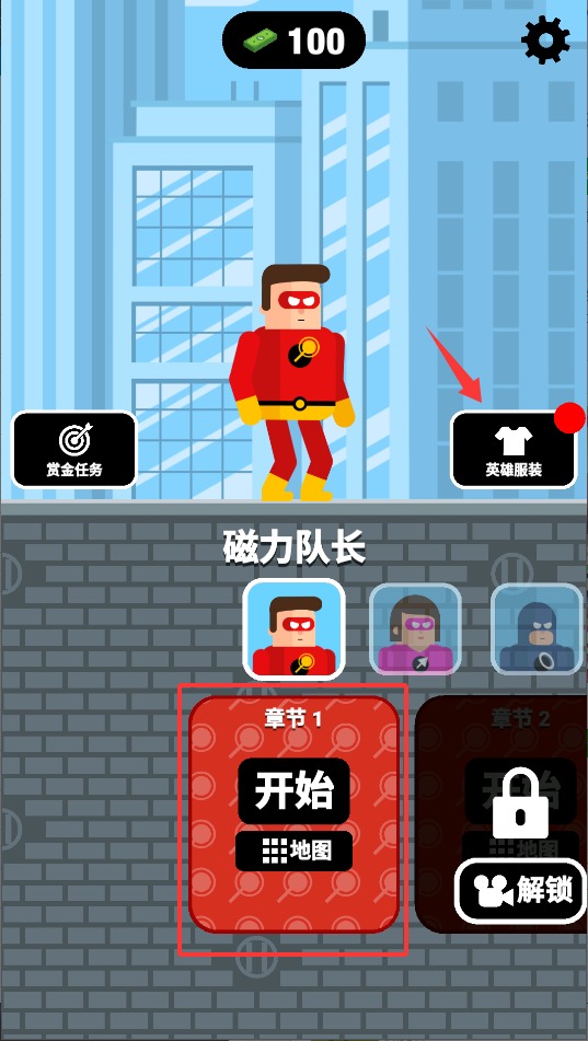 1、进入游戏主界面点击开始按钮,完成初始任务可获得金币奖励,用于解锁不同风格的战斗服饰。