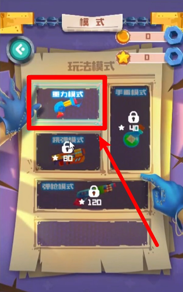 2.玩法模式中可选择重力模式开始挑战,其他模式需累计星星数量来逐步解锁开放内容。