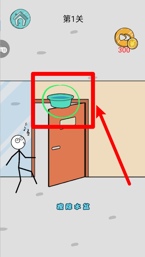 1.关卡有隐藏陷阱,例如门上方的水盆装置,玩家需事先点击将其擦除才能安全通过。