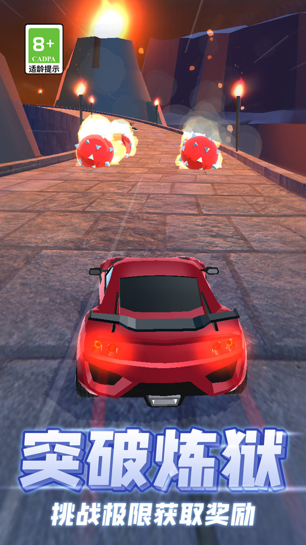 2.关卡挑战升级:游戏内设多种复杂赛道,包含高空飞跃、连续弯道、突发障碍等元素,每一局都极具挑战性和爽感。