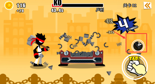 3、把汽车破坏掉之后,点击右边继续下一关。