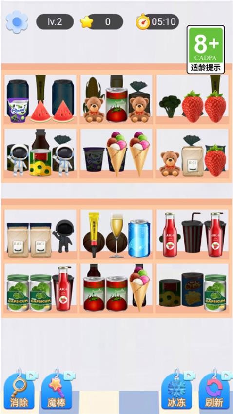2、解压效果整齐排列的商品和清脆的消除音效,带来强烈的视觉和听觉满足感,游戏成为日常放松的绝佳选择。