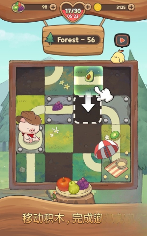 2、游戏允许玩家移动积木到空白区域,通过合理的拼凑完成道路建设,帮助小猪顺利通过各种障碍和陷阱。