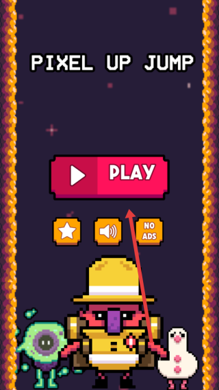1、点击主界面【PLAY】按钮,进入【PIXEL-UP-JUMP】游戏,操控像素角色开启跳跃挑战。