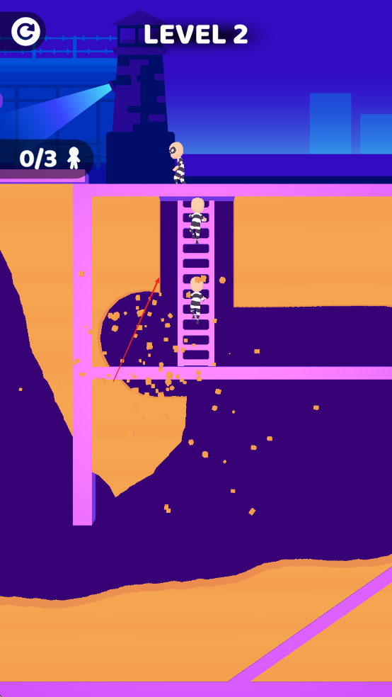 1、进入游戏后点击屏幕规划挖掘路径,避开地下水管电网等陷阱,同时留意地面守卫巡逻路线,选择安全时段挖掘。