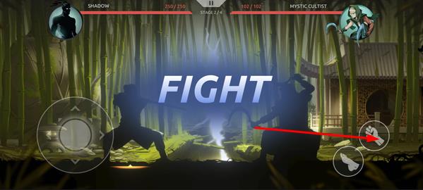 1、打开游戏等待加载完成,通过背景对话了解剧情后进入新手教程,跟随提示熟悉左边轮盘移动、右边拳脚攻击的基础操作。
