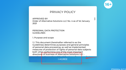 2、点击下面英文同意用户协议。