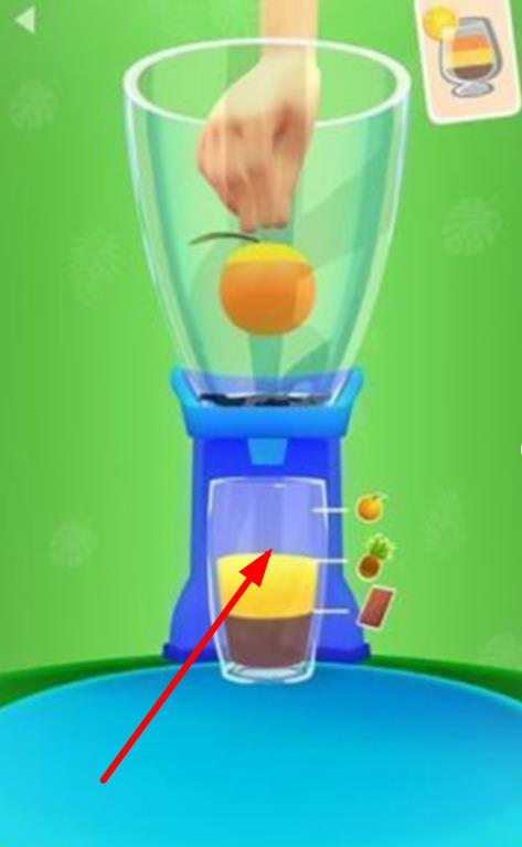 1、进入界后查看顾客订单需求,拖动对应水果或蔬菜到榨汁机内,点击启动按钮开始搅拌。