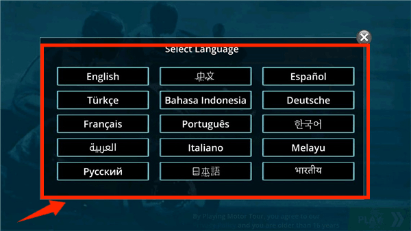 1、下载安装好游戏后打开,选择一个语言进行游玩。