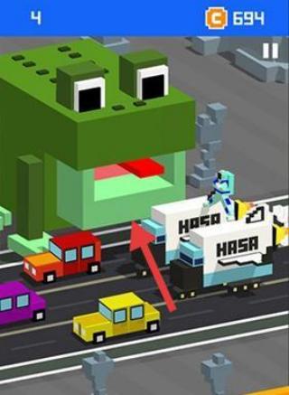 2、生存挑战:每关(3、4、5关等)需在车流、特殊生物(巨蛙、章鱼)间寻路,成功通过则进入下一场景,累计分数(界面显示“433”“694等)。