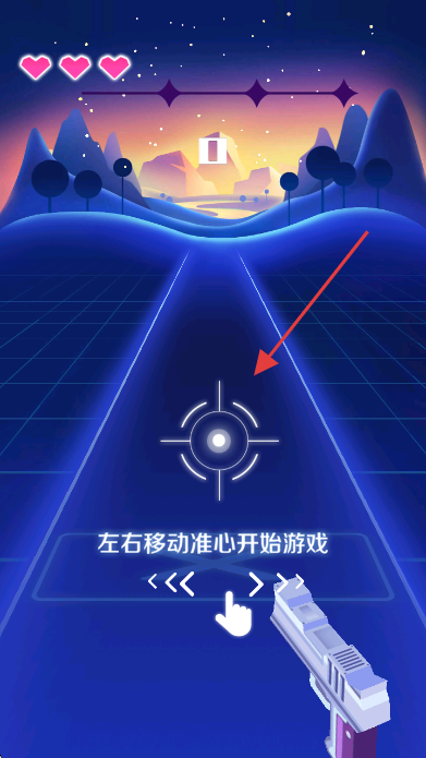 1、左右滑动屏幕移动准心,触发游戏开始,进入射击节奏关卡。