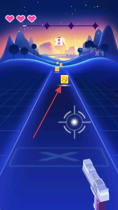2、操控准心瞄准道路上的音符道具,点击射击,获取分数推进关卡。