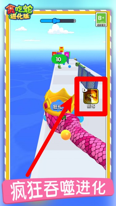 2.点击右侧的强化技能按钮可瞬间狂化,短时间内吞噬量爆发,让成长效率大幅飙升。