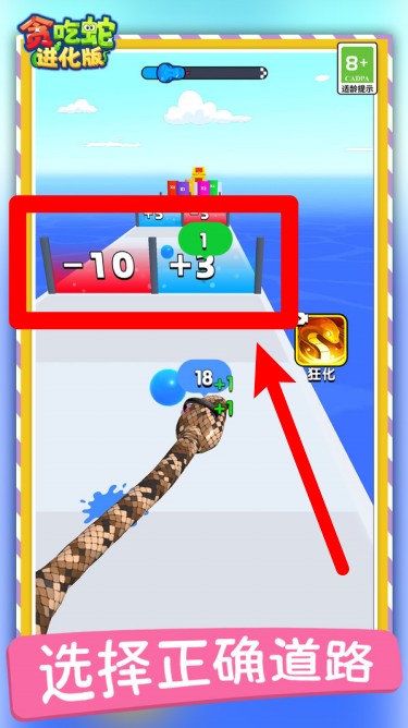 3.道路分岔时优先选正数通道,避免走入扣分区域,才能确保蛇身不断变长冲刺更高分。