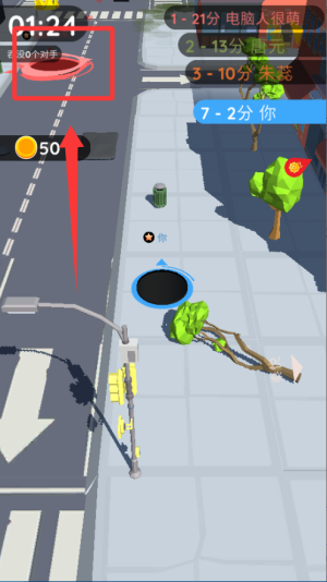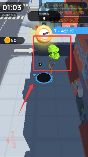 1、开局先控制黑洞吞噬周围的小型物体,比如行人和车辆,快速扩大体积,为后续挑战更强大的对手打下基础。