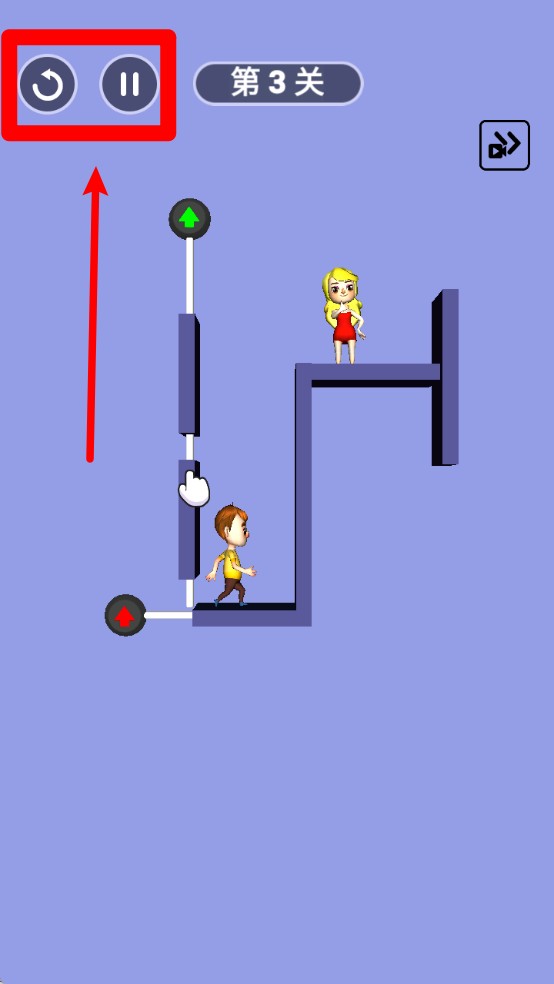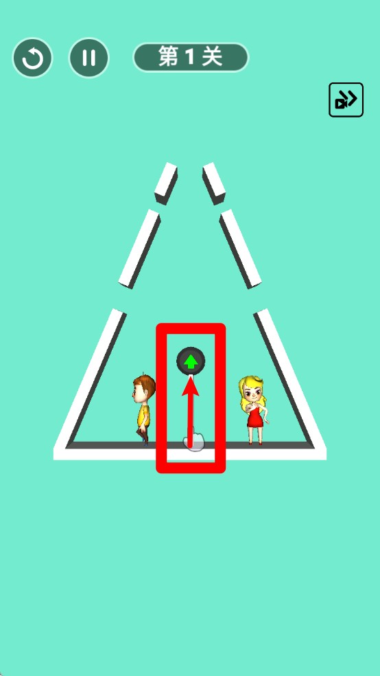 1.拖动中间机关按钮向上滑动,可开启通路帮助两位角色顺利碰面完成过关。