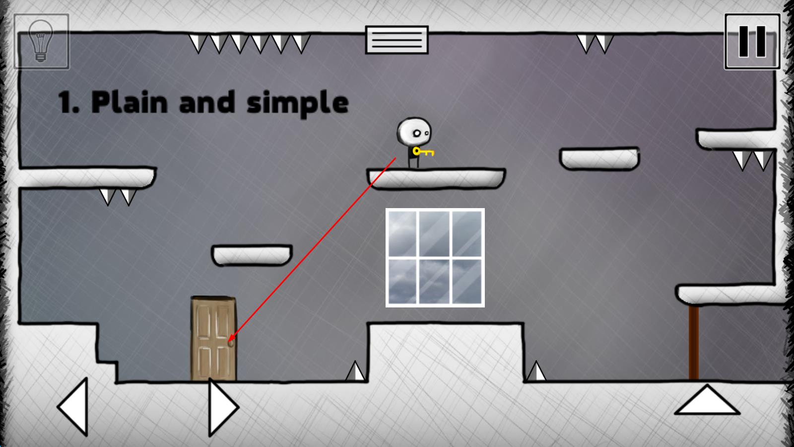 1、初入游戏第一关,直接拿走钥匙打开右边的门即可完成通关,简单的操作背后隐藏着游戏的基本逻辑。