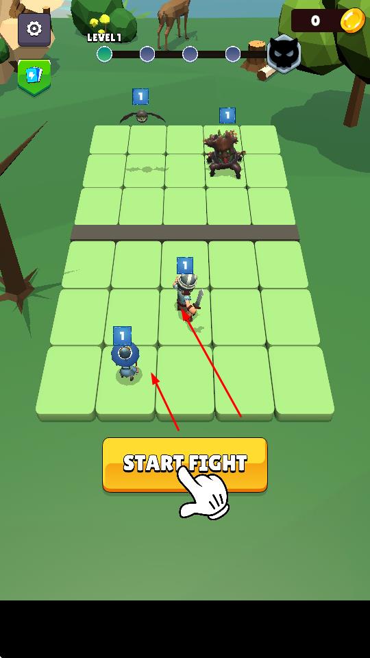 2、点击“STARTFIGHT”,触发战斗,单位沿布置路线自动进攻,与敌方交战,依据属性、站位判定胜负。