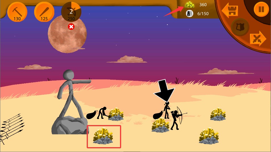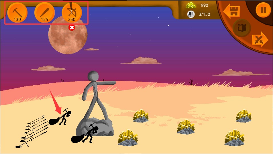 1、点击屏幕部署火柴人士兵,合理分配近战与远程单位,确保阵型前后搭配得当,形成攻守兼备的布局。
