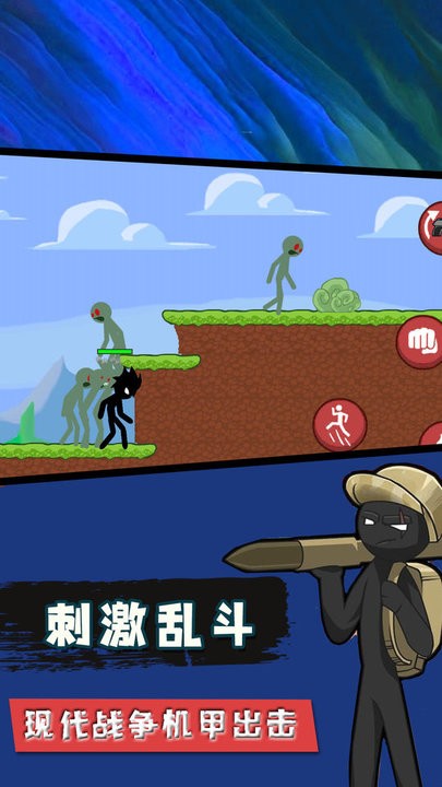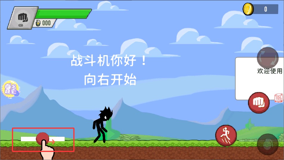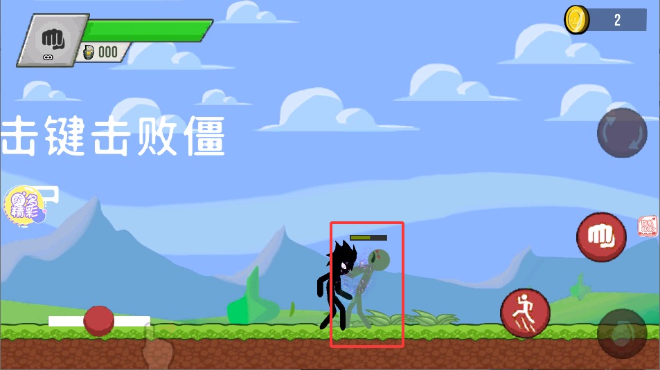 1、左侧屏幕控制火柴人忍者移动方向,通过点击左右区域调整行进路线,灵活穿梭于不同战斗位置。