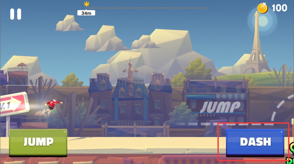 1、点击屏幕右侧实现跳跃(长按可增高),左侧按钮触发短程冲刺,两者组合能完成诸如蹬墙反跳、空中变向等进阶技巧。