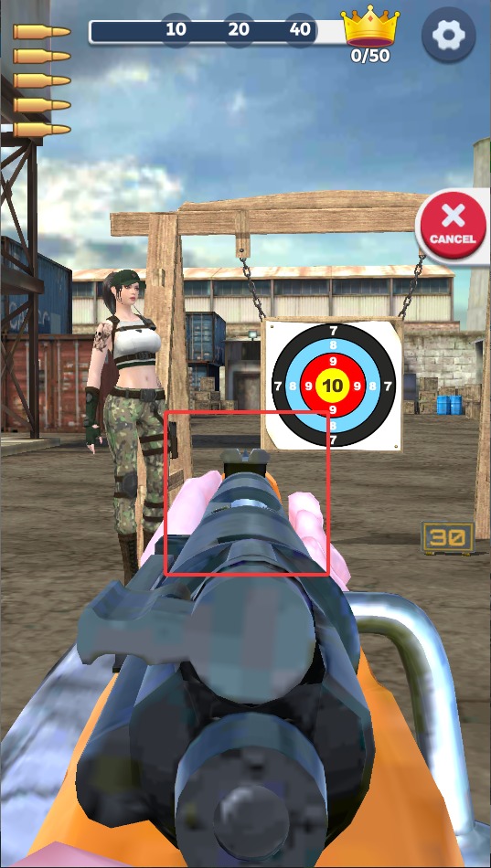 1、进入靶场后手指滑动屏幕控制准星移动,注意保持稳定追踪标靶,红色靶心出现时要快速调整射击角度。