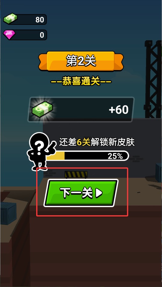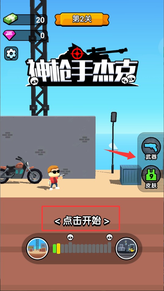 3、消灭所有目标后抵达终点即通关,点击下一关按钮可挑战更高难度,解锁更强力的武器装备。