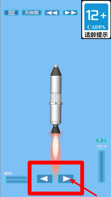 3.左右方向调整:底部箭头按钮用于调整火箭飞行角度,玩家需根据当前高度与方向微调控制确保飞行稳定不偏航。