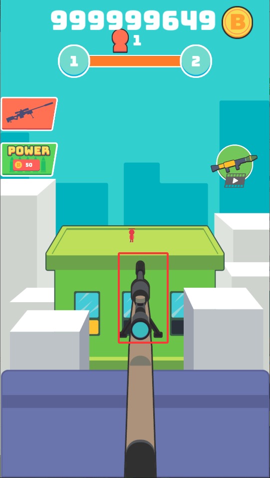 2、长按屏幕进入瞄准状态,松开手指即可完成射击,把握好射击节奏能快速消灭多个目标。