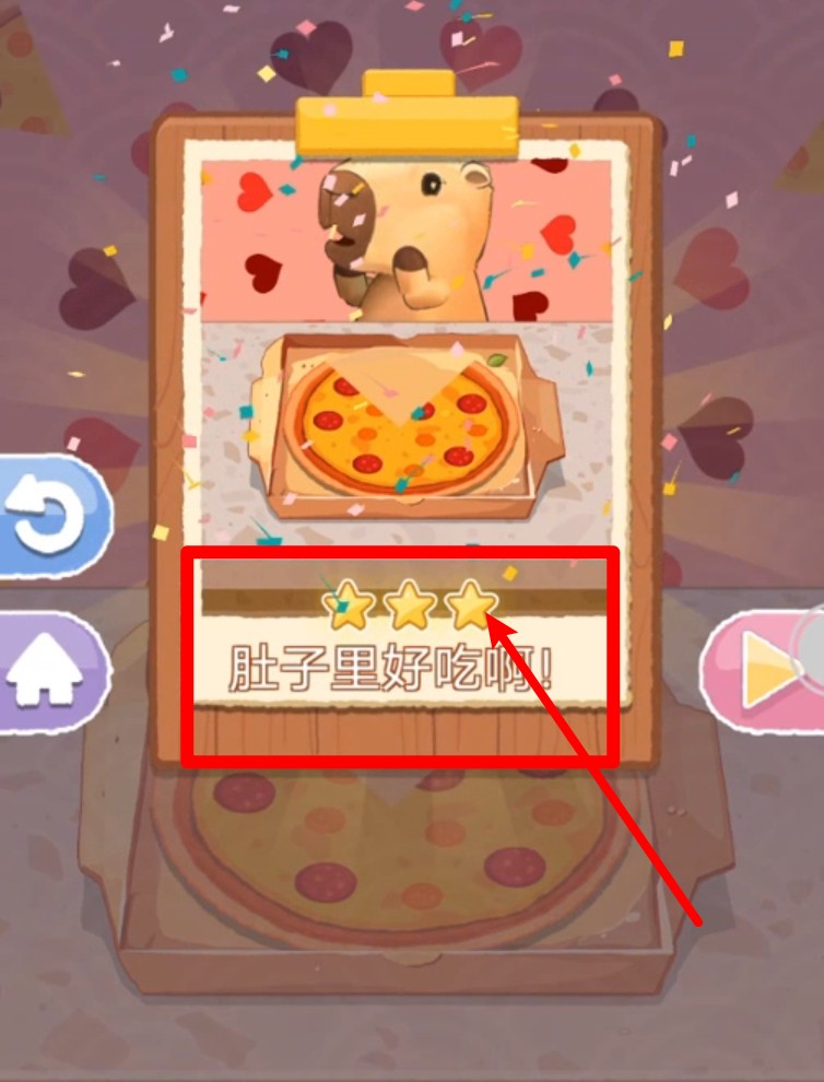 3.评分系统机制:完成关卡后会根据你的操作效率与切割准确度评星,最高三星评价,评价旁还会显示“肚子里好吃啊”等趣味语句。