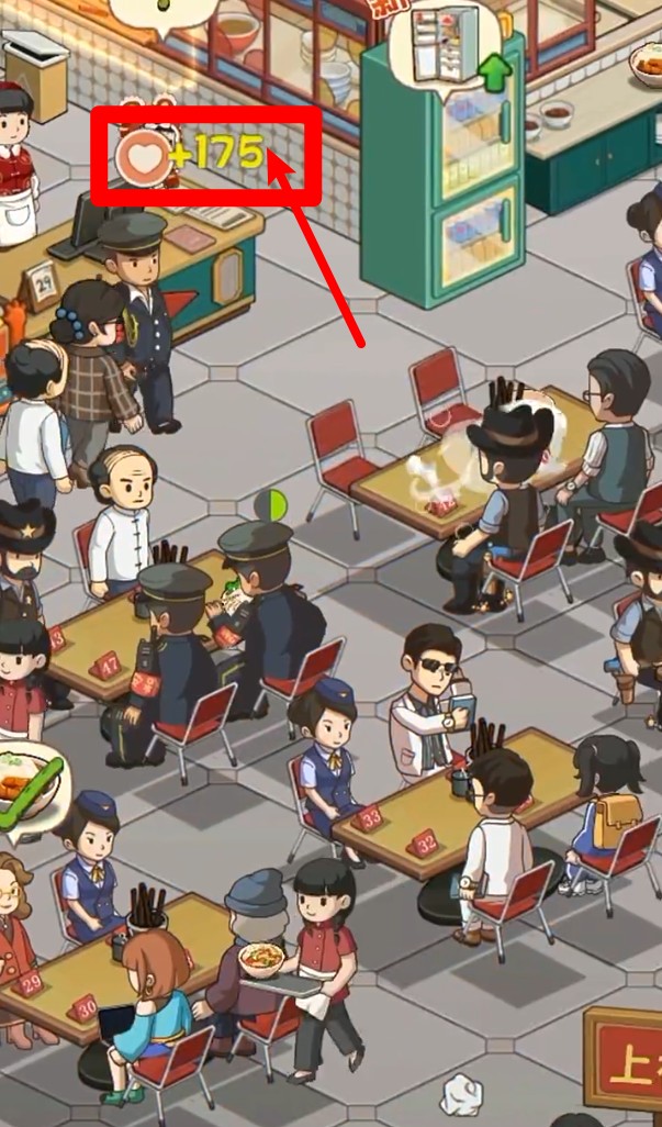 1.顾客满意度提升:当顾客用餐体验良好时,会掉落心形图标并显示数值,表示顾客对菜品与服务的满意程度正在上升。