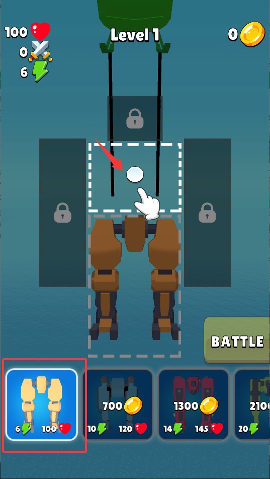 1、通过滑屏操作控制机械单位移动,收集场景中的零件进行拼装组合,提升战斗能力应对后续挑战。