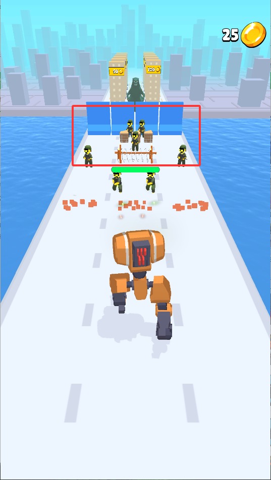 2、操控机械与沿途小怪交战,利用走位与技能搭配消灭敌人,积累经验为最终对决做准备。
