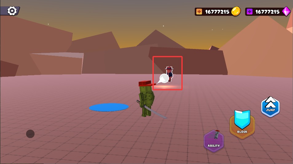 1、通过手指滑动屏幕控制瓜球移动方向,在场景中灵活走位,避开障碍物并接近目标敌人。