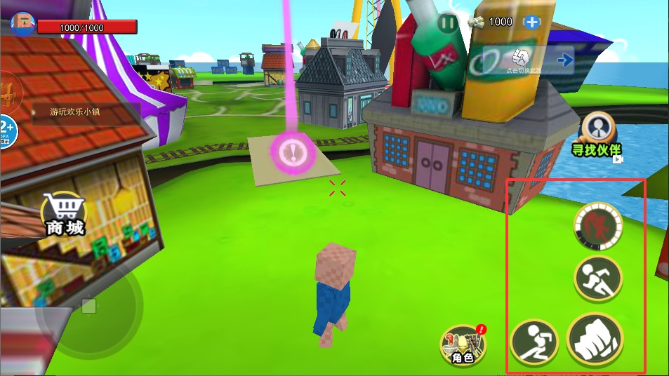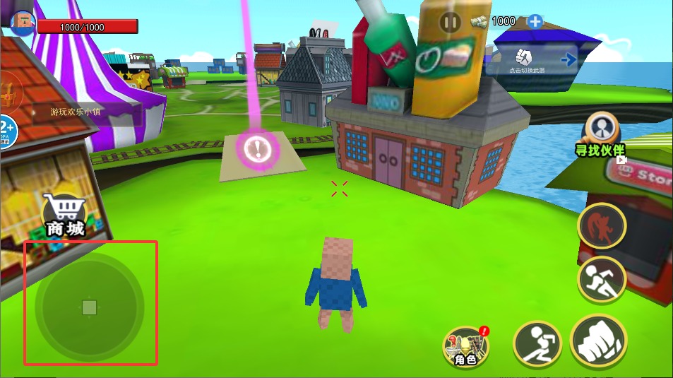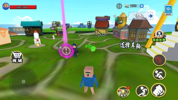 1、左手滑动屏幕控制村民移动方向,在像素世界中自由探索,寻找隐藏道具和任务目标。