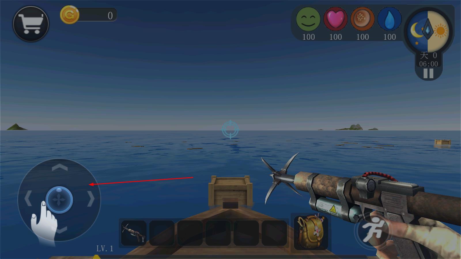 1、初入游戏,玩家置身于漂浮的木筏上,首要任务是打捞海面资源,制作基础工具,为在海上生存奠定基础。