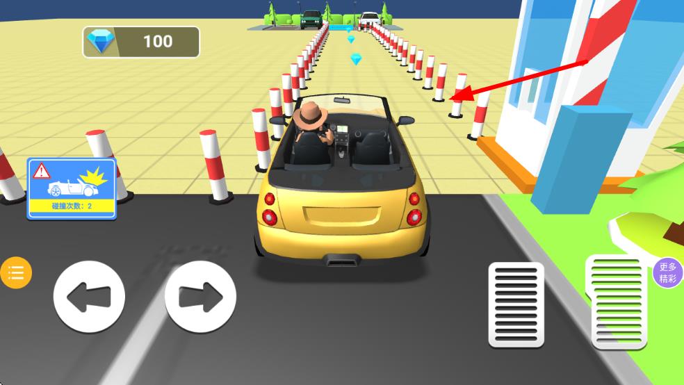2、驾驶过程中避开路障与陷阱,根据路面标线和箭头提示调整行驶路线,控制车速准备精准停车。