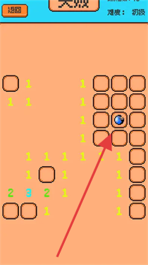 3、在初级难度雷区,依据数字提示(如方块旁数字),点击安全区域,避开雷区,完成扫雷。