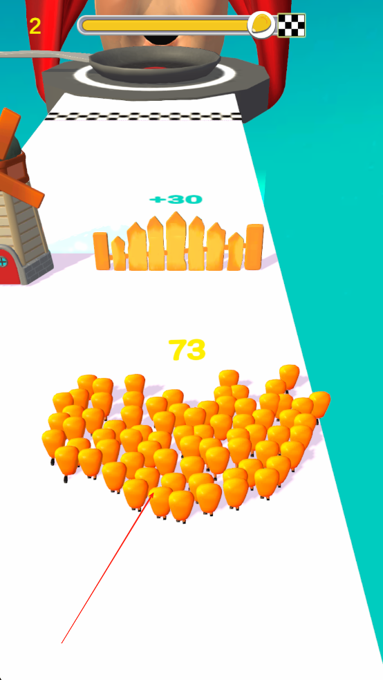 1、进入游戏后滑动屏幕操控初始爆米花沿赛道左侧移动,优先收集金棕色的基础爆米花,每收集10颗触发一次队伍体积膨胀动画,同时留意地面阴影预判陷阱位置。