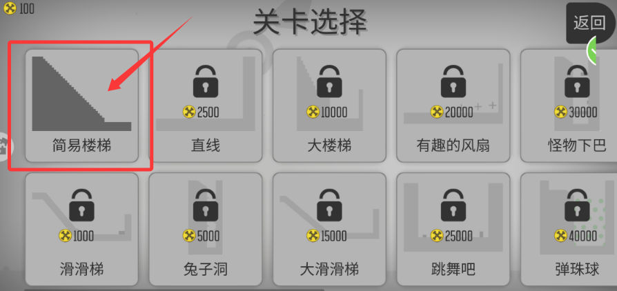 2、进入关卡选择页,选“简易楼梯”等关卡,开启你的挑战。