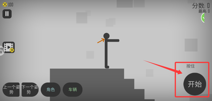 1、点击开始,将在关卡中给火柴人制造相应的事故。
